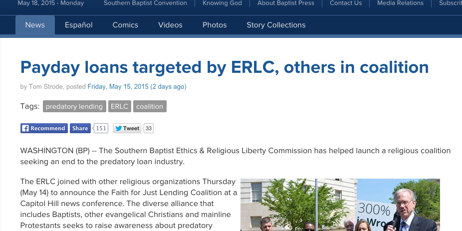 The ERLC joined with other religious organizations Thursday (May 14) to announce the Faith for Just Lending Coalition at a Capitol Hill news conference. The diverse alliance that includes Baptists, other evangelical Christians and mainline Protestants seeks to raise awareness about predatory lending and to motivate individuals, lenders, churches and the government to help bring an end to the practice.