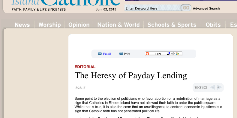 Some point to the election of politicians who favor abortion or a redefinition of marriage as a sign that Catholics in Rhode Island have not allowed their faith to enter the public square. While that is true, it is also the case that an unwillingness to confront economic injustices is a sign that Catholic faith has not penetrated political life.
